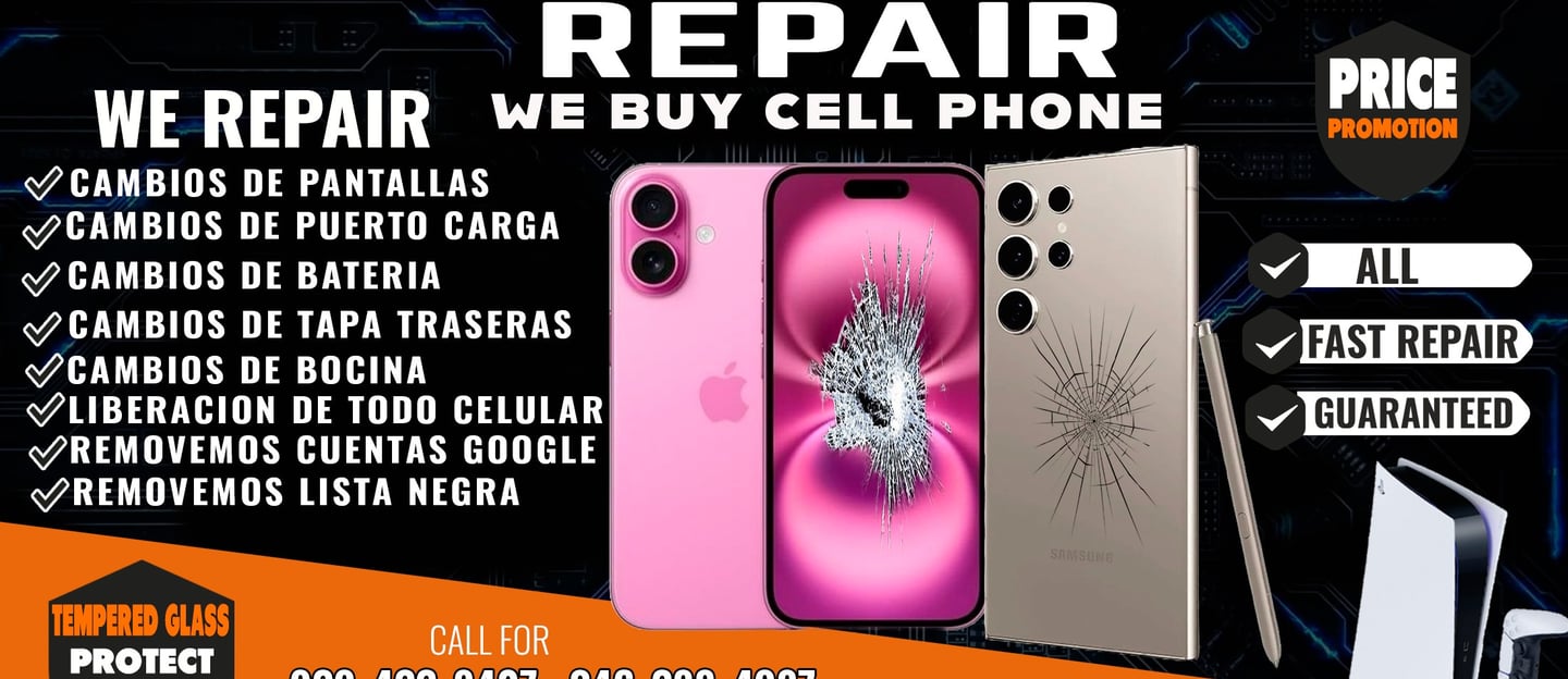 Ofrecemos reparación y desbloqueo de iPhone, Samsung, LG, Motorola y más. Compra y venta de celulares y accesorios.